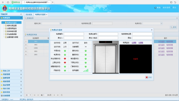 本系统采用“电梯标示电子标签”为基础进行每部电梯的规范化、信息化标识;通过对电梯使用单位、维保单位、检验单位、行政主管单位的全业务整合,对电梯从安装、维保、检验、变更、改造、注销全寿命周期进行监管,同时提供应急救援和社会监督、投诉信息化渠道,可迅速根据日常数据生成各类报表,便于主管单位监管。