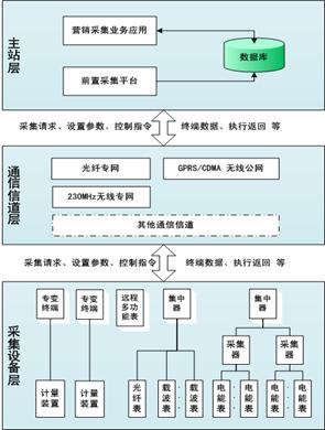 低压载波集中抄表系统在逻辑上分为主站层、通信信道层、采集设备层三个层次。
