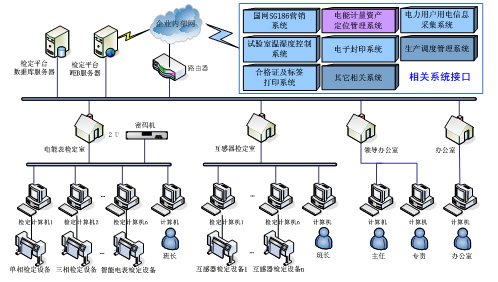 《电能计量检定综合管理平台系统》 以电力企业网络为基础,依据相关规程、标准和JJF1069法定计量检定机构考核规范 等,利用先进的软件技术为电能计量检定工作提出的解决方案。将电能计量检定的各个环节和流程进行优化整合,以工作流的方式实现计量检定业务的有效关联。